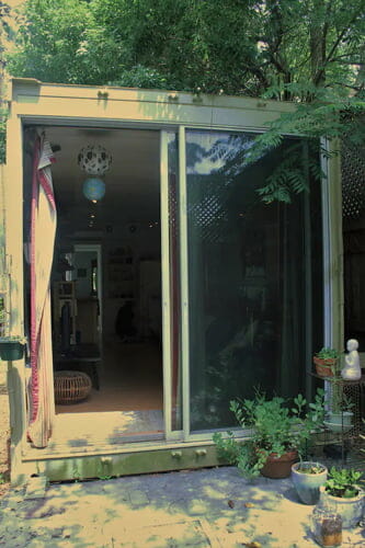 This is an adorable tiny container guest house that has a distinct Florida vibe thanks to its garden and funky design.