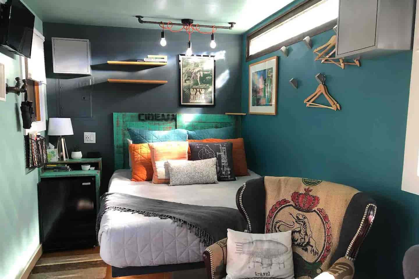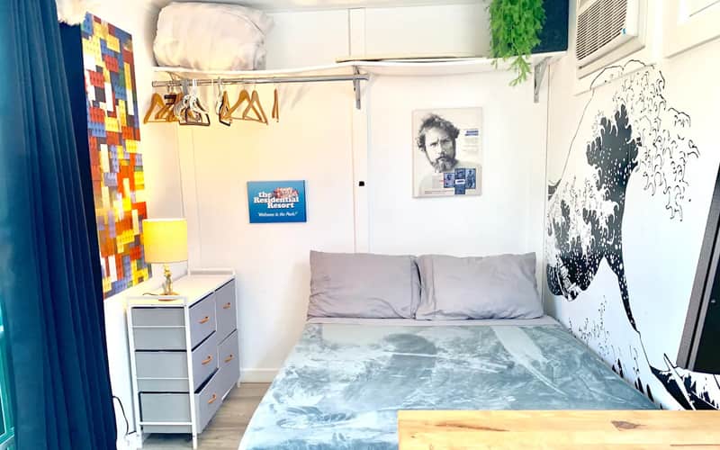 The Residential Resort in Culver City offers a fun and creative atmosphere. The decor of this container home stands out from all the others. It has one bedroom, one bath, and holds two guests. You get the container home to yourself though there are a total of three units so you can socialize with other guests.