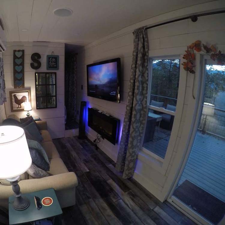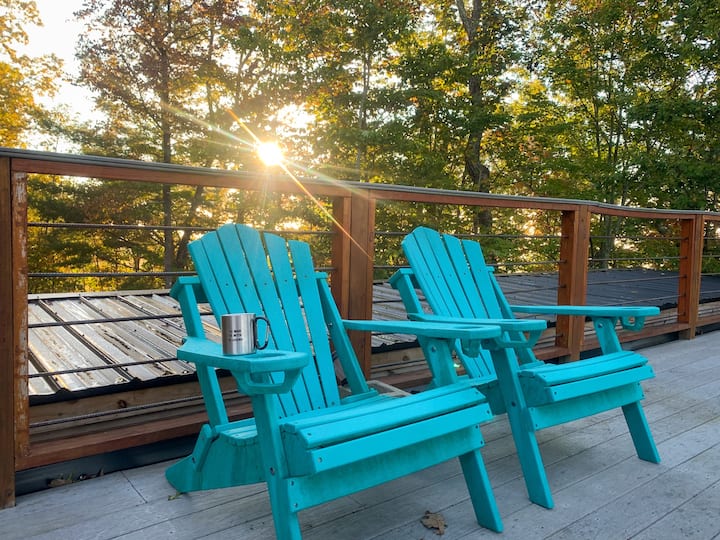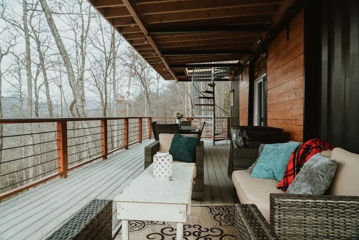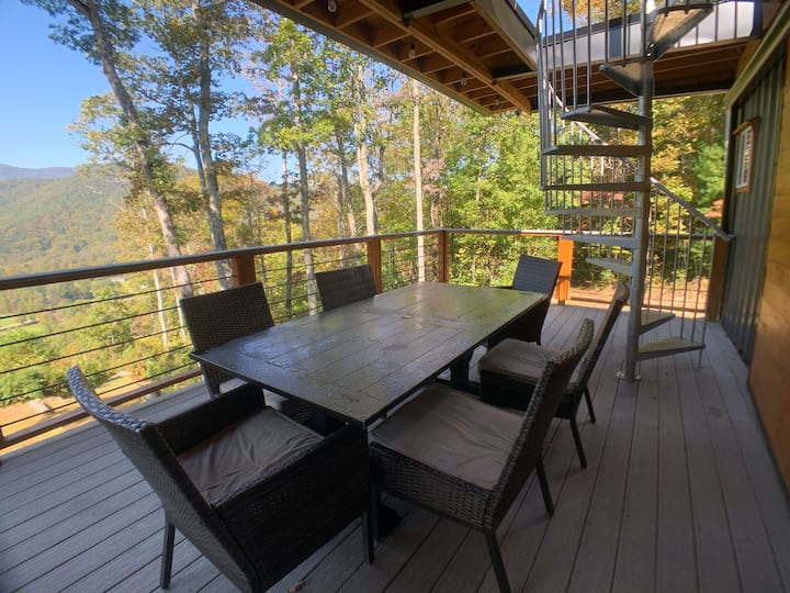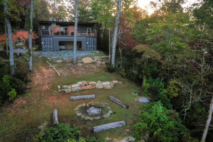 We built the Appalachian Container Cabin as a place to share with our family and friends, and have started using it for short term rentals as well so we can share it with others.  The property where the cabin sits is truly unique.  It’s a 30-acre parcel of land, on top of a mountain, with a long-range view of the Smokey Mountains and the Appalachian Trail.  The cabin takes full advantage of the views with some expansive outdoor decks and a huge firepit.