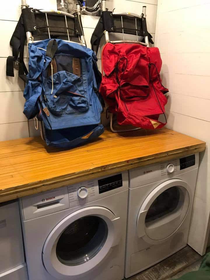 All of those trapping of home fit in about 320 SF, with another 320 SF of storage from the lower 20ft containers. There are several hundred more square feet of deck space split across two levels. And more recently, they’ve enclosed the area between the two bottom containers and added a garage door, giving additional storage space.