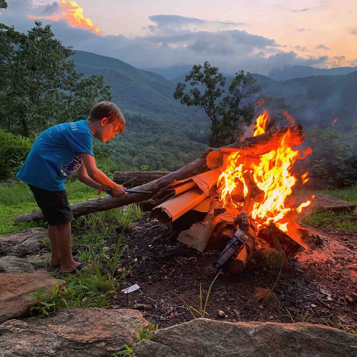 Our two favorite things about the design of the cabin are not about the cabin itself, but about what the cabin allows us to do as a family. First, we love to sit on the top deck in Adirondack chairs, gaze at the crystal clear Milky Way and spot satellites and shooting stars as they streak across the sky.  Second, we love to huddle around a huge fire on a crisp fall night and watch the embers from the fire dance off like fireflies into the distance which is coated with all the brilliant colors that the fall harvest has to offer.