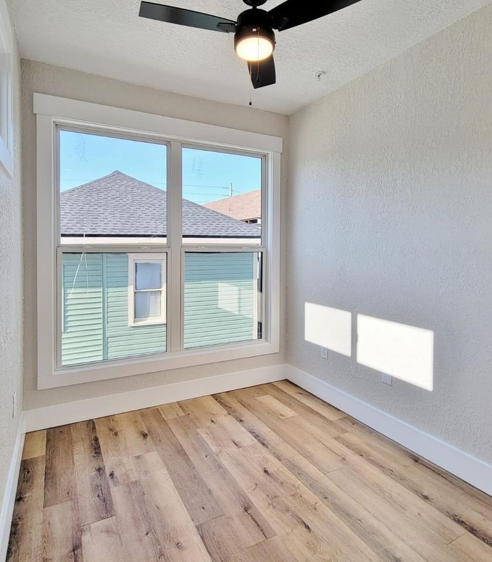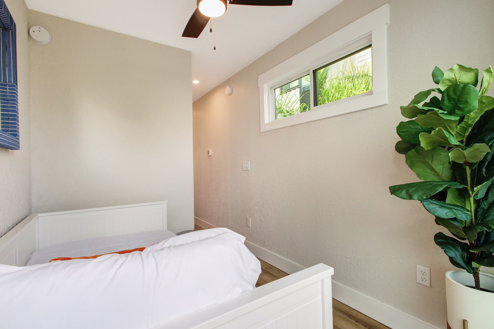 With only a 0.13 acre lot, there wasn’t a lot of room. So the design went vertical, incorporating three stories. Each story is essentially identical, although the ground floor is ADA compliant and lacks the balcony that higher floors offer.