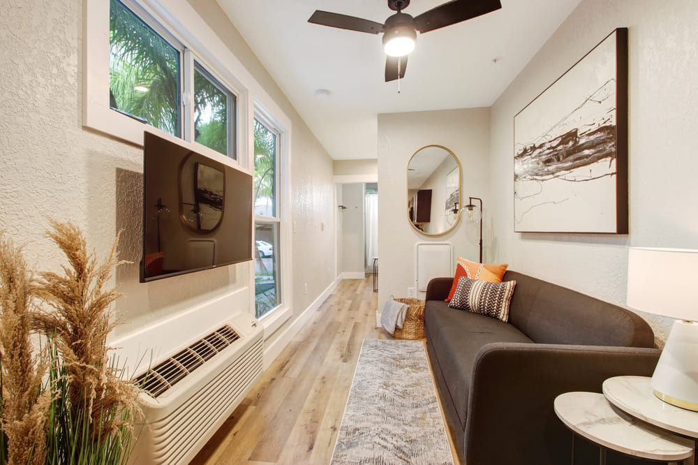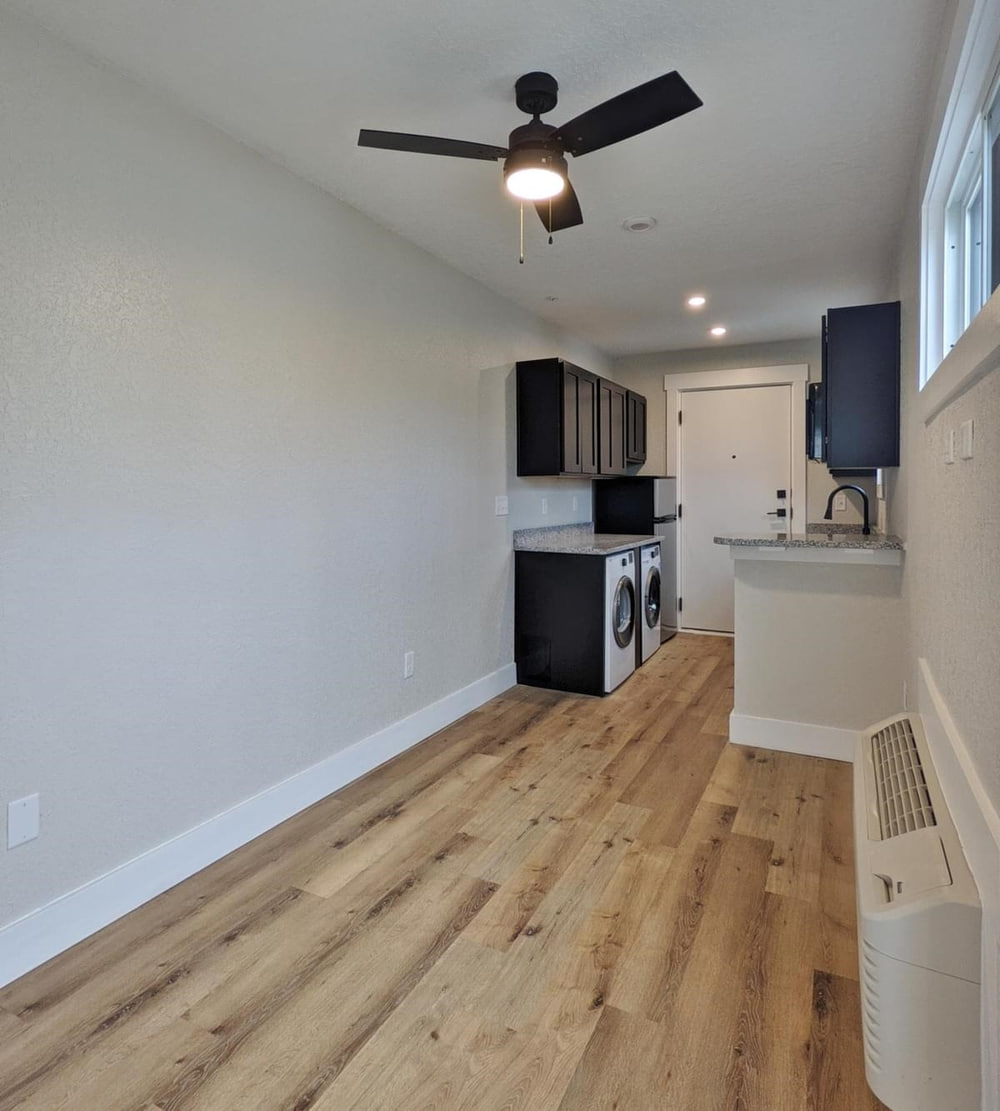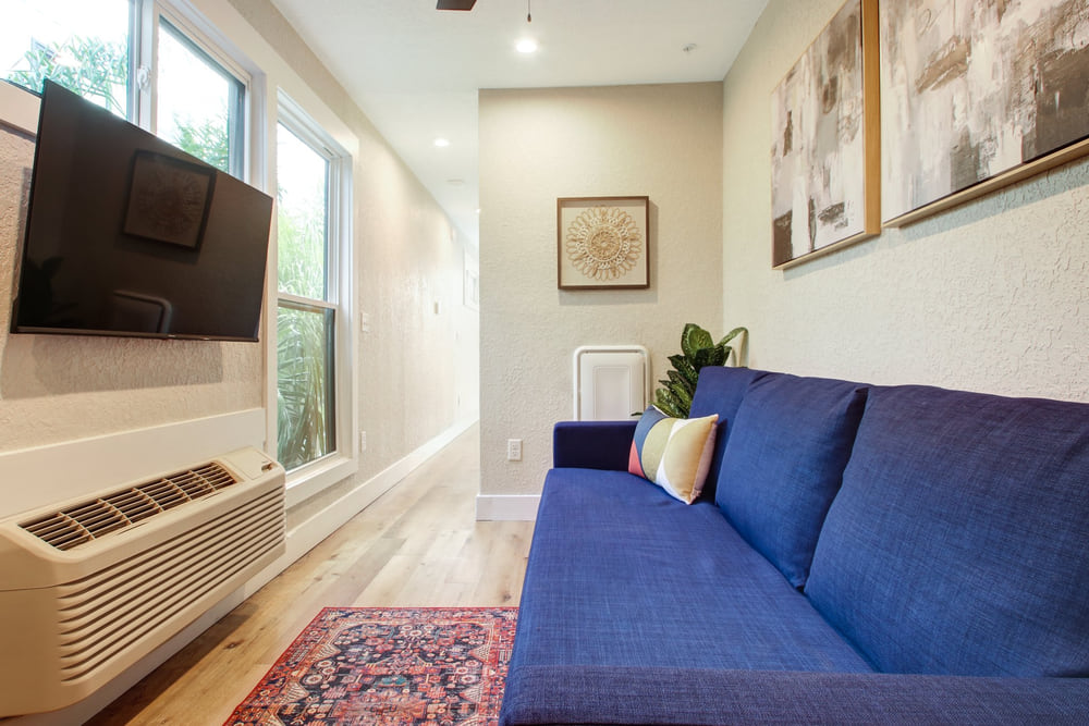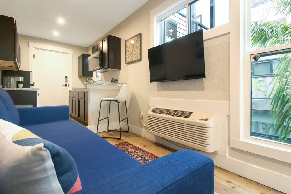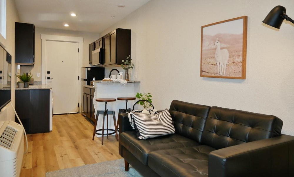 But we won’t sugarcoat it, this isn’t an apartment complex for everyone. There is no parking at all, so you’ll be on your own to find street parking down the street. And the units are basically efficiencies, with no door separating the sleeping and living areas.