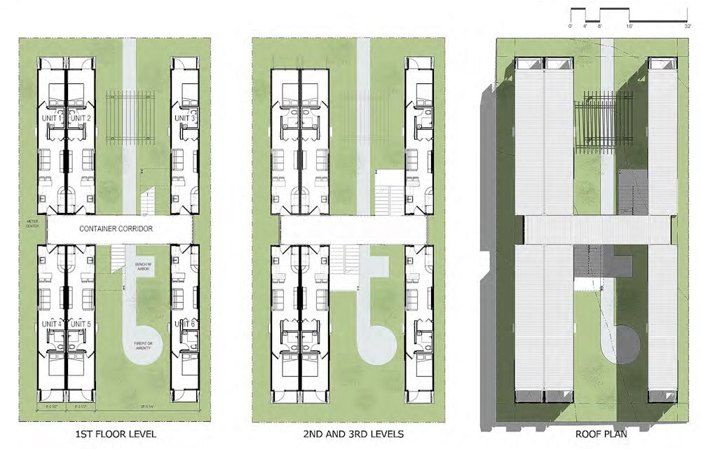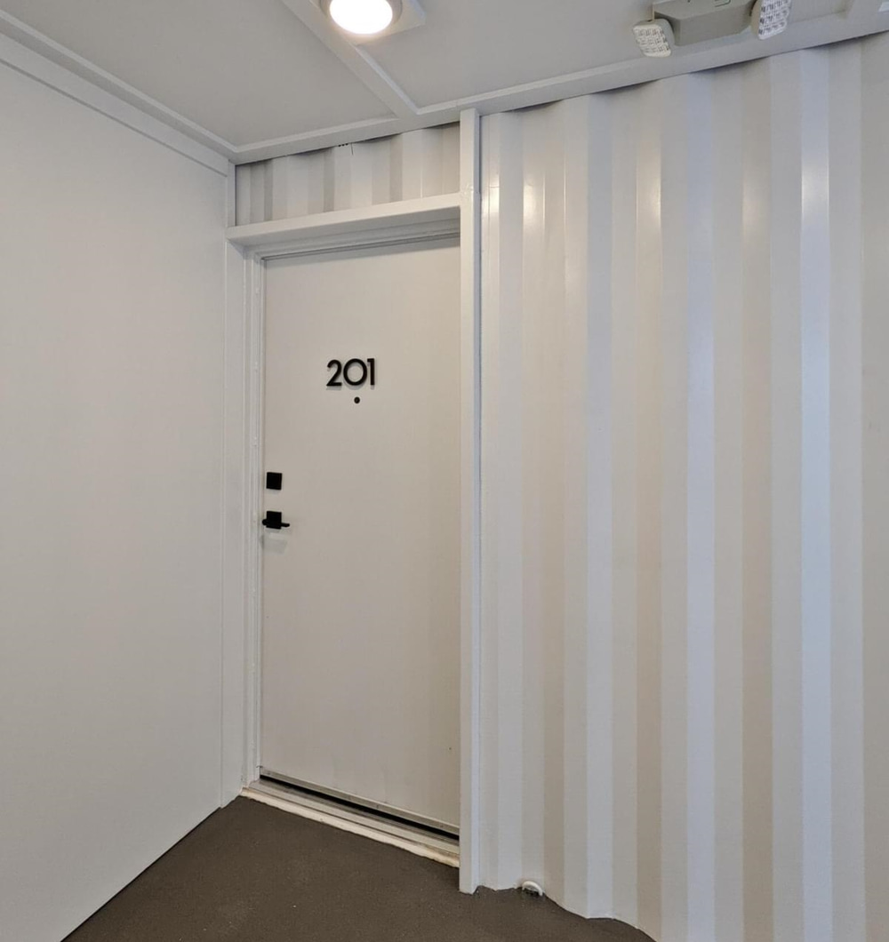 Each of the 18 40-foot containers holds one of the 18 units. When built, the plan was for nine units to be used as short-term rentals and nine for regular apartments. That unit mix may shift over time as market demands change.