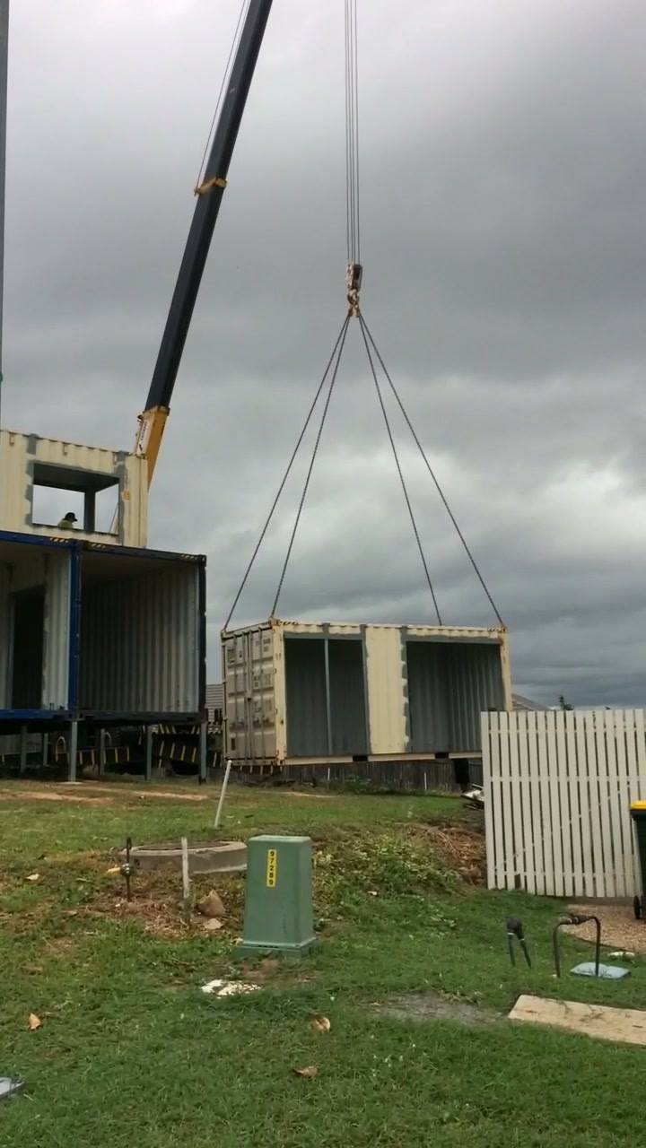 Then it was a simple matter of using a crane to lift the first floor containers into place on the posts.