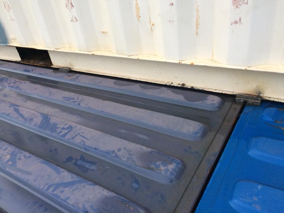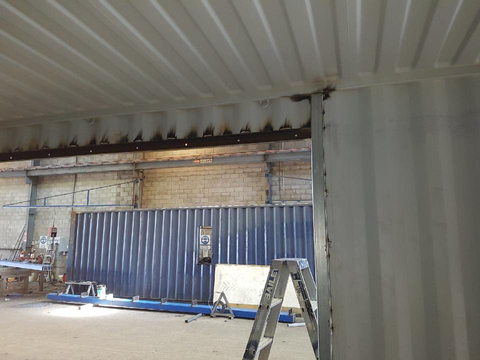 The first physical work on the home was actually performed off-site. The containers were purchased and then the cutting and reinforcing was done in a warehouse.