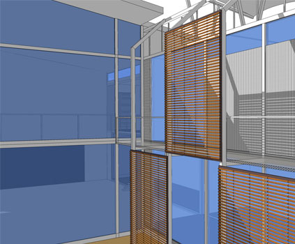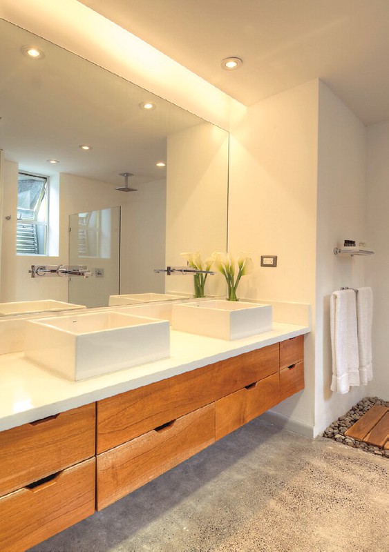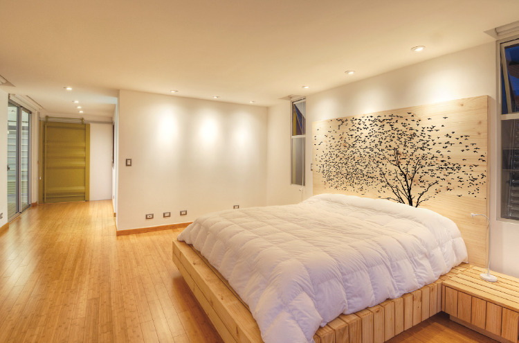 An interesting feature on many of the windows is moveable bamboo panels that help reduce heat gain while allowing some indirect light to get through. Along with the sizable roof overhangs, this helps keep the home relatively cool in the warm summer months without using air conditioning. And, because of the natural lighting, the home doesn’t even need to turn on its LED lights until the nighttime.