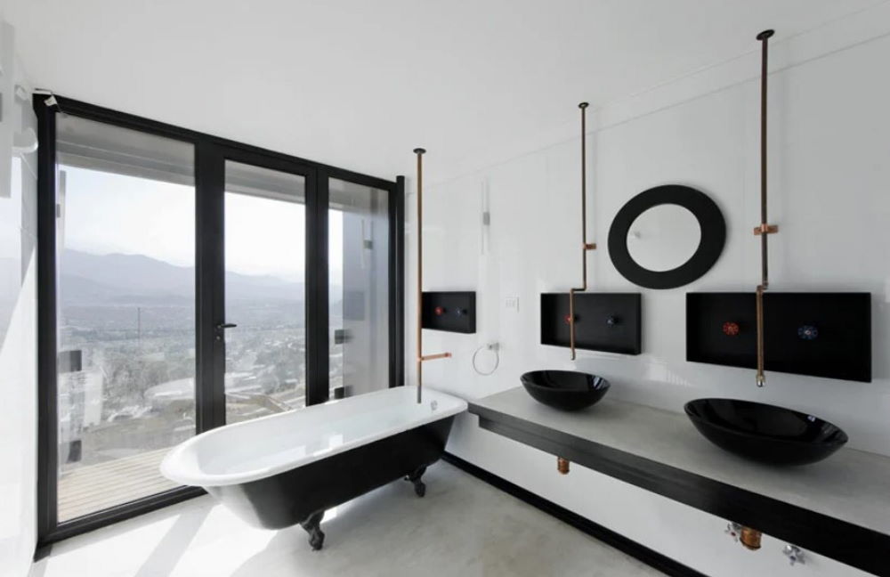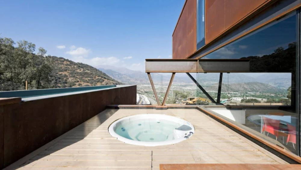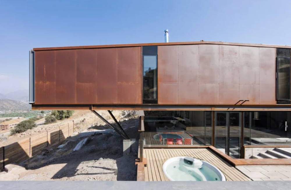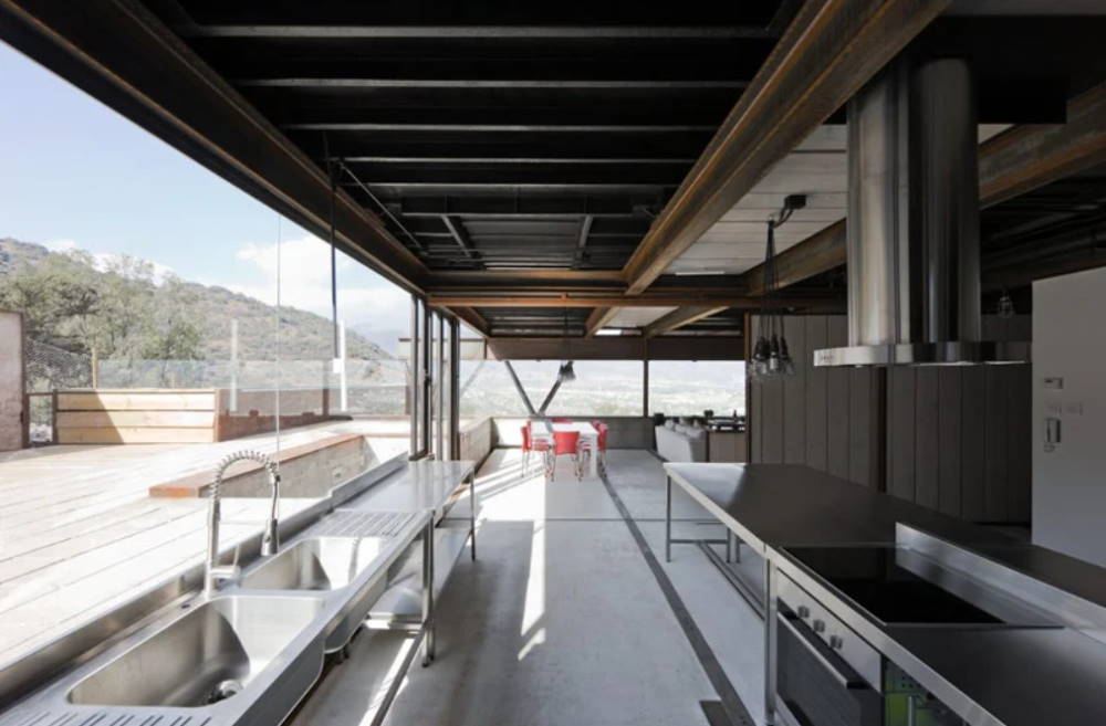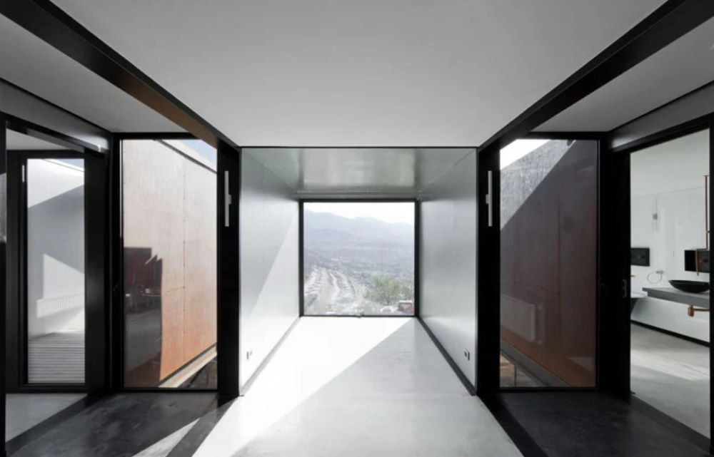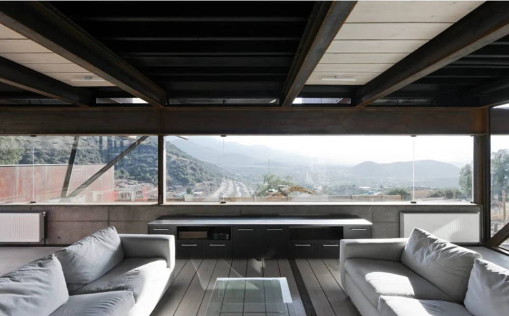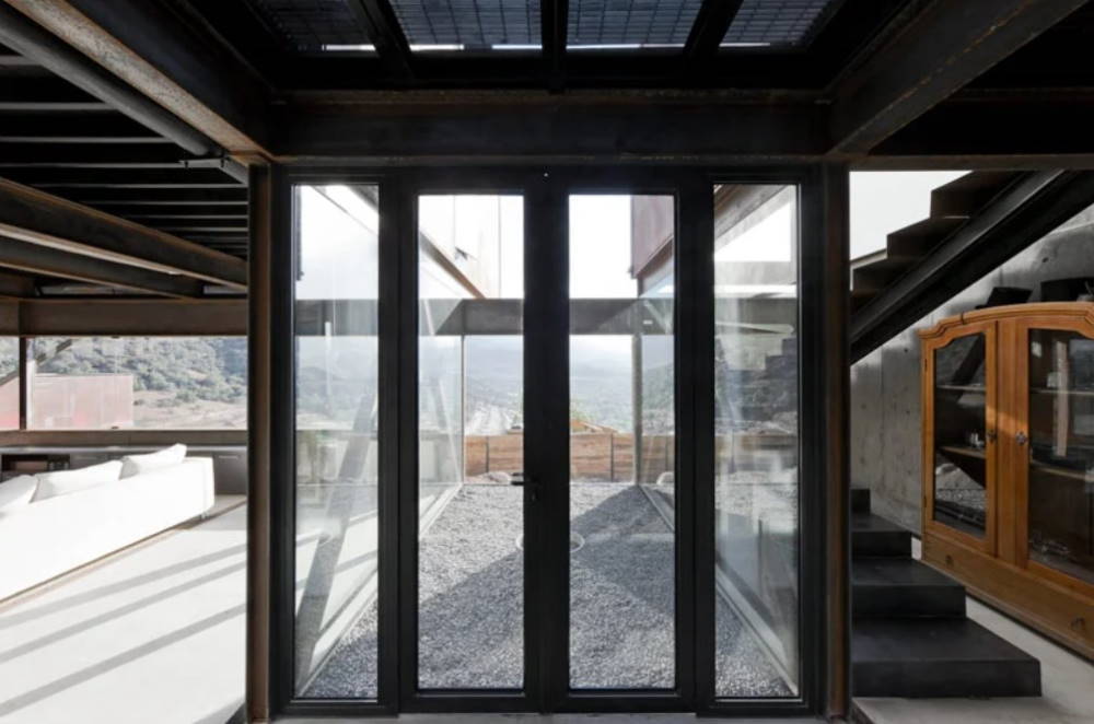 The home makes use of other industrial materials and aesthetics, includes weathered steel, poured concrete, expanded steel, and others. Together with the floorplan, they work in harmony to create a cohesive design aesthetic that blends with the Andes mountains. And, they also harmonized into a cohesive, low-maintenance system that ensures light and fresh air reach all corners of the home.