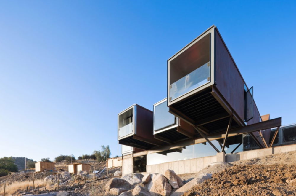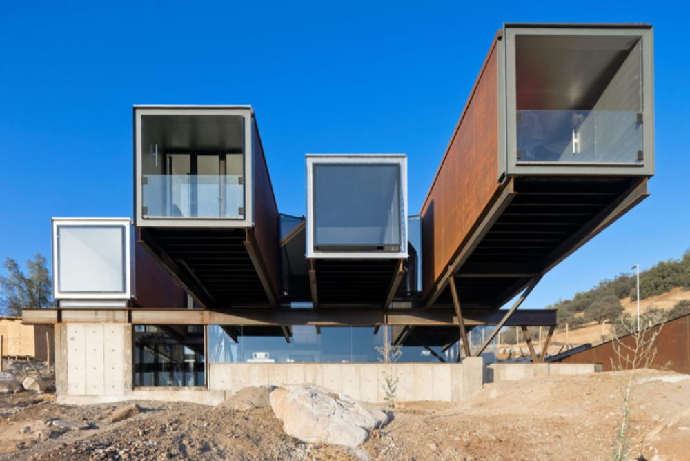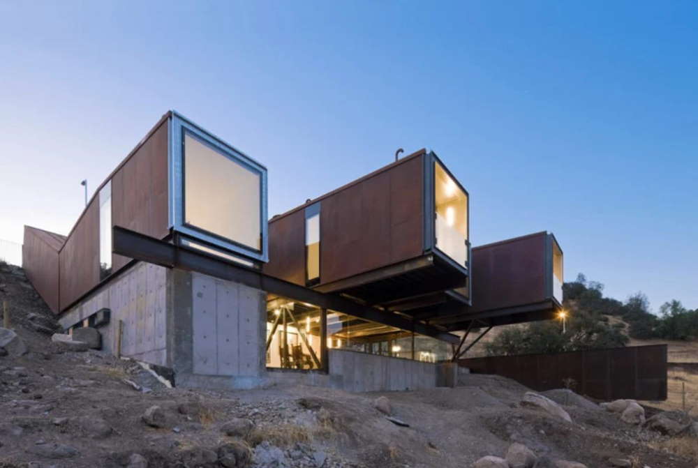 This radical home uses shipping containers in ways that are well beyond what most people imagine for box architecture. Set on a hillside outside of Santiago, Chile, this container home looks like it has grown right out of the mountain.