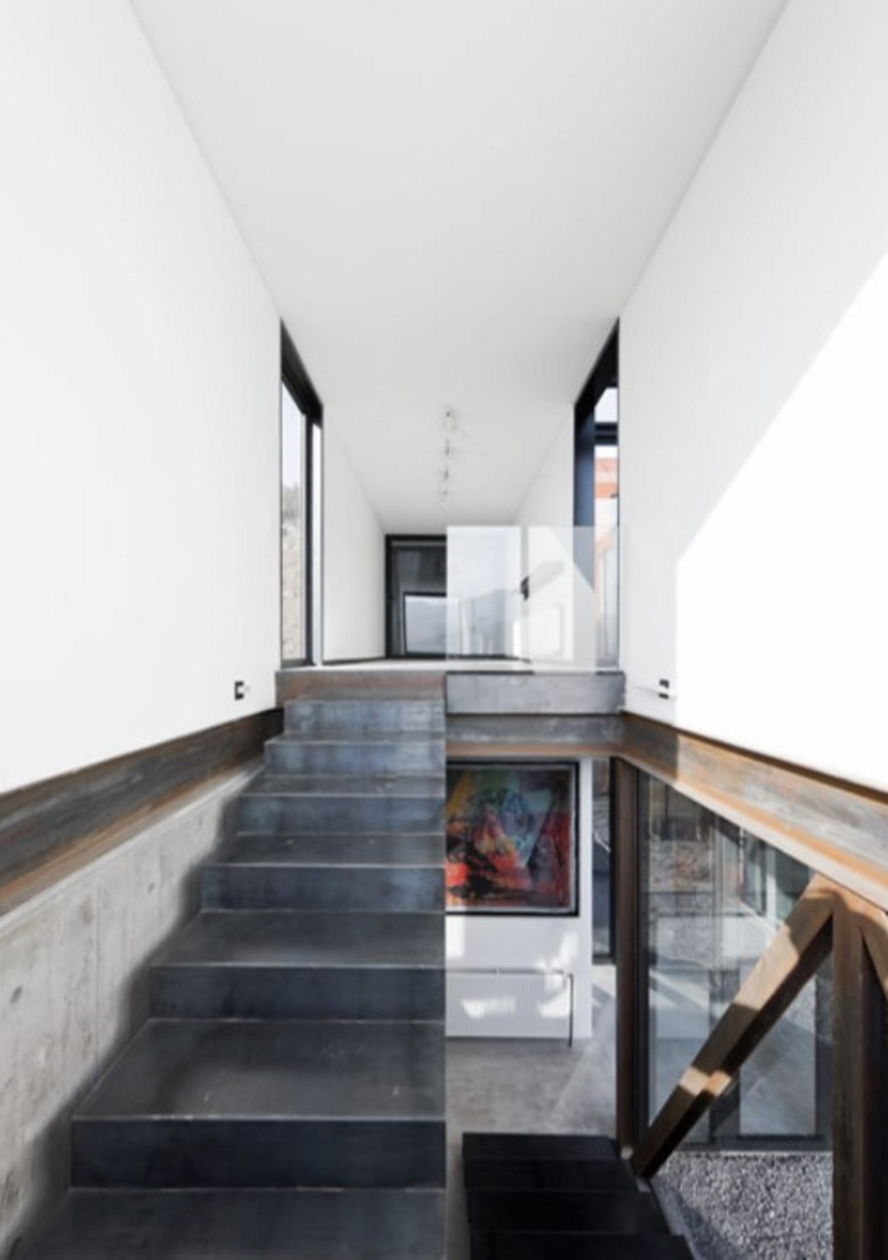 Due to the sloped site, the home has a lot of stairs. One container is dedicated to a long staircase, taking you down from street level into the home. Other staircases are used to move between the home’s two levels.
