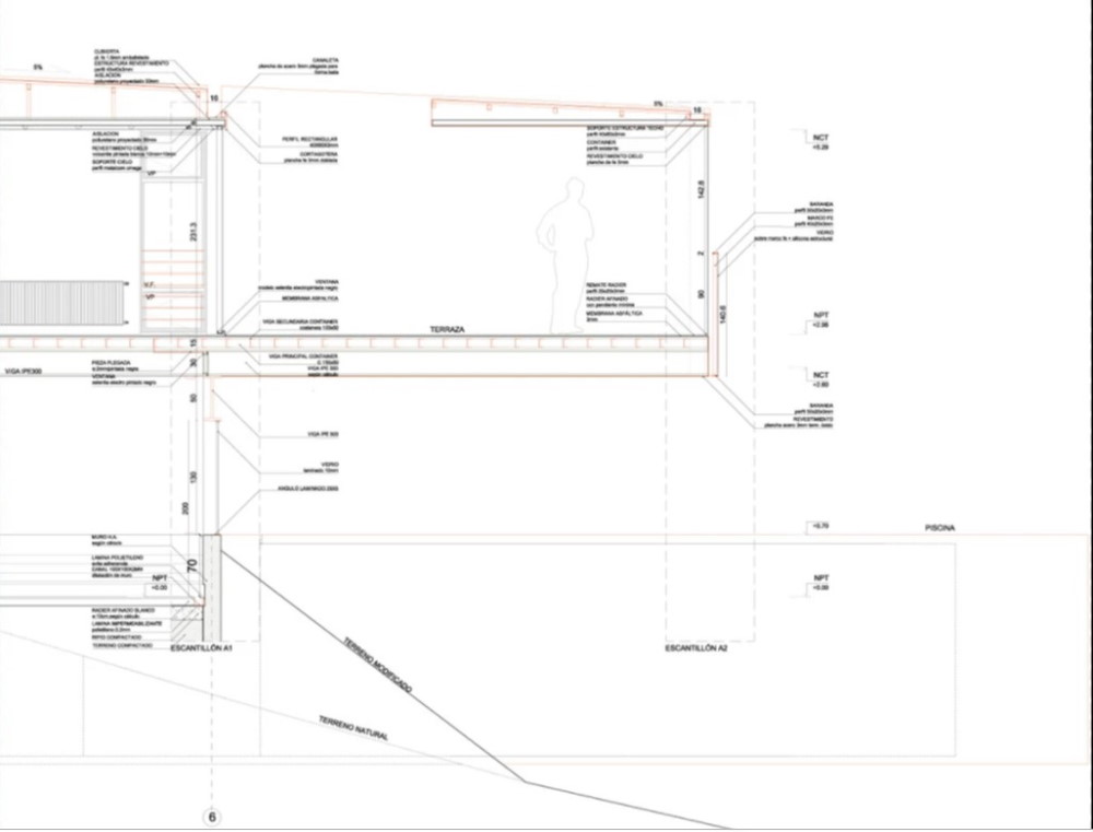 In total, the home makes use of five 40 ft containers, six 20 ft containers, and one 40 ft open-top container used for the pool. Second-hand containers were used to reduce cost, provide character, and speed up construction.