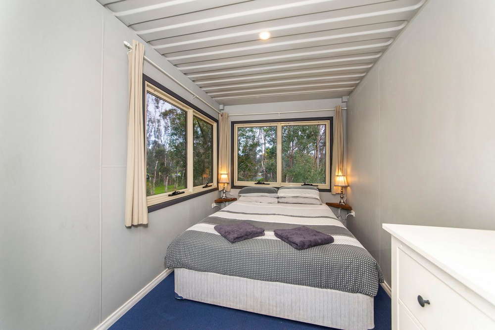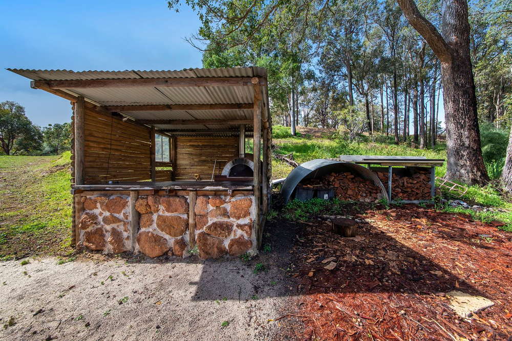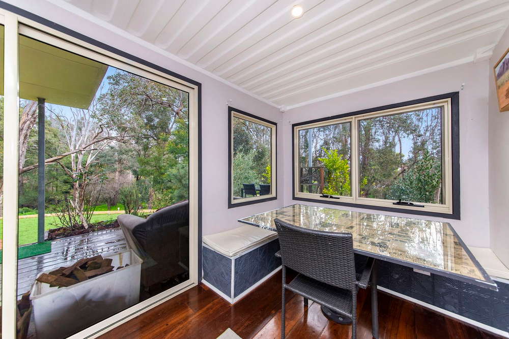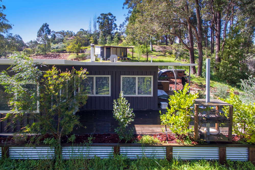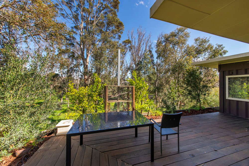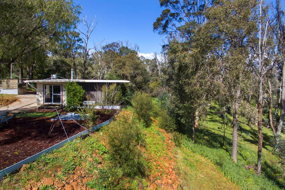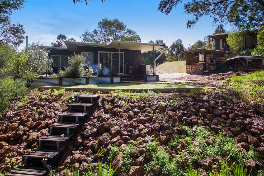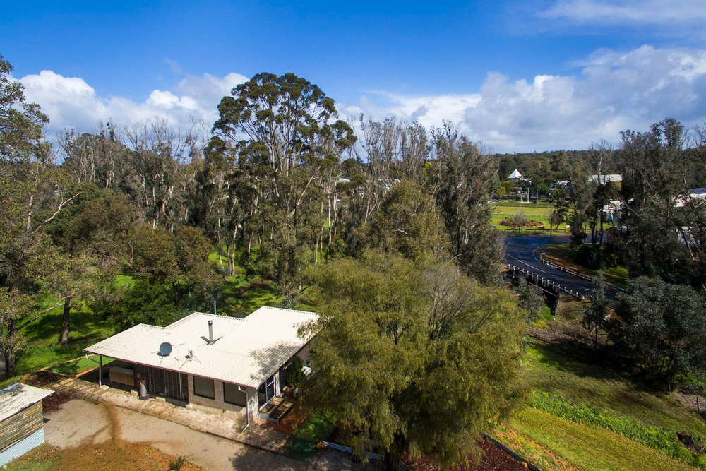 The home sits in the small village of Nannup, in the far SW corner of Australia. While it’s a short two-minute walk into the center of town, the home is set up on a hill and feels more remote than the description may indicate. The location provides great views of the mature trees and the nearby Dry Brook creek.