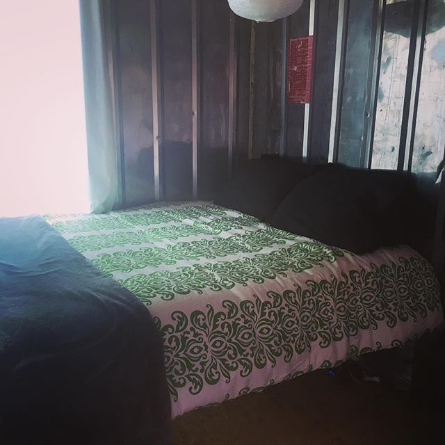 My design theme was industrial meets skate/surf shop, but with some flexibility based on what materials I was able to source for free or cheap. This design idea has worked really well as a rental because the space is open and has just the basics. I loved the layout so much I did the same thing for the second one.