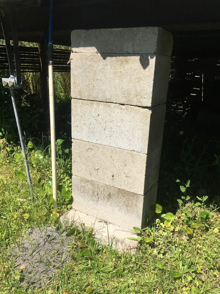 The steel beams I mentioned earlier that held the containers were not quite big enough for the job and so a few months ago I devised a solution. We jacked up the containers and built supports with concrete block in the same way you would support a trailer or mobile home. This has worked really well so far.