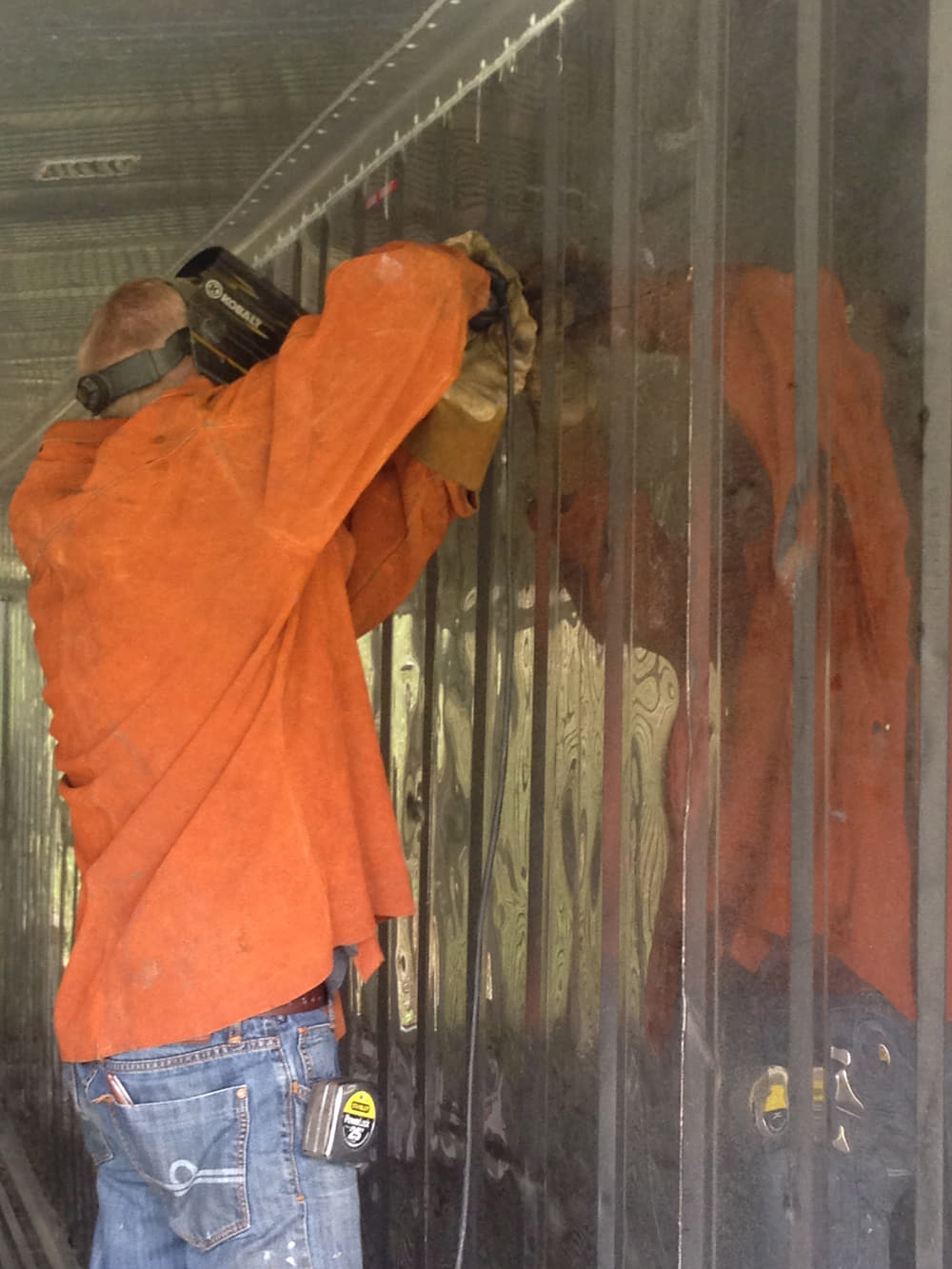 Despite having the end wall that covers the hole from the refrigeration units, our design did call for some cutting to make additional windows and doors in the sides of each container. The cuts were made with a grinder as well as a reciprocating saw with a metal cutting blade.