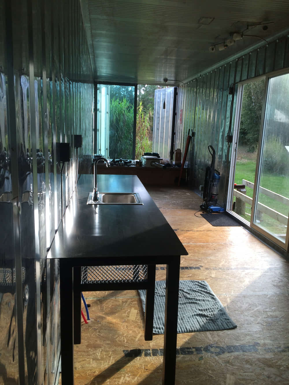 As examples, I used an old sink from a restaurant for a kitchen sink and used a broken sliding glass door for windows. It’s easy to find small amounts of materials on Craigslist, Facebook Marketplace, or Offer Up for little or no money. So much is thrown away and with a little creativity, it could be built into something that can generate income. The design had to remain flexible because you never know what you’re going to find, and being a DIY project enabled that flexibility.