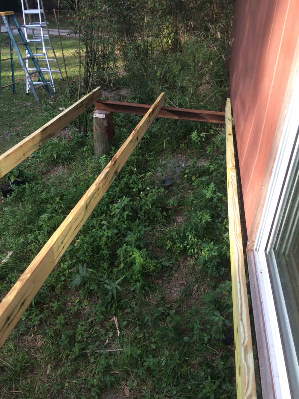 At one point in the past, my ex-partner had wanted to build a regular house on our land, elevated above ground level. He installed nine 30-foot telephone poles into the ground at a depth of 10 feet. They were arranged in a 30-foot grid pattern. The project was basically abandoned after that.
