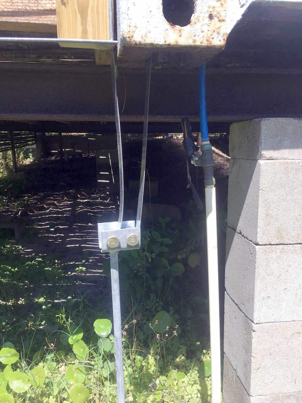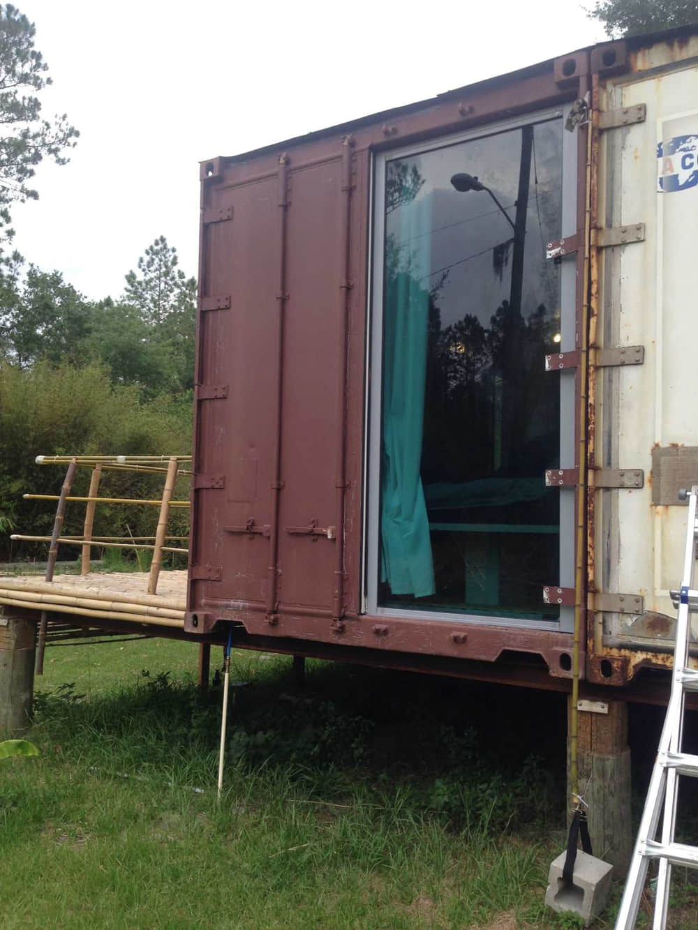 We do tend to have extreme weather here, so I’ve made a few adjustments to account for that. In case of lightning, I had my electrician install grounding straps from the containers to a grounding rod driven into the ground. I also decided to install hurricane straps that are wrapped through parts of the containers and secured to the ground. The containers are quite heavy and probably not in danger of moving but I like everything to be extra safe so I added the strapping just to be sure. I even had people stay during the hurricane last year and I had no worries about their safety.