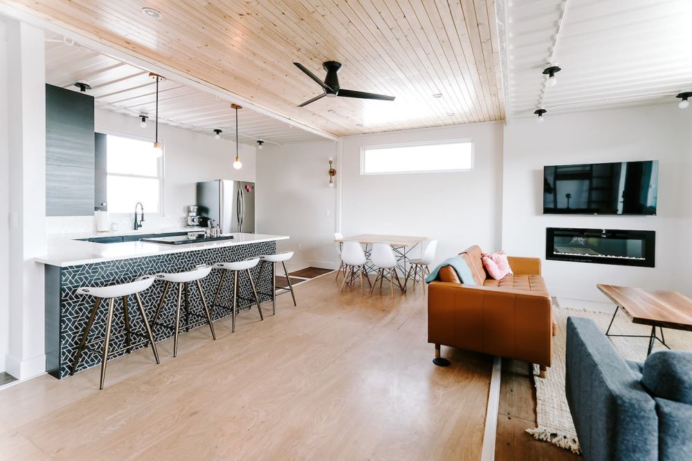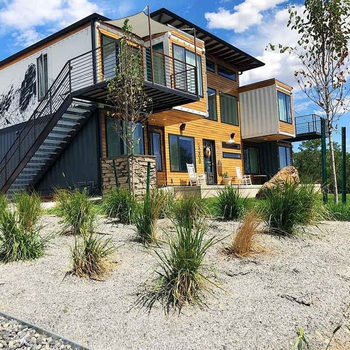 More recently, the couple has onto the home to increase their space. Specifically, they created a shipping container apartment above the detached garage, used primarily for Airbnb guests.