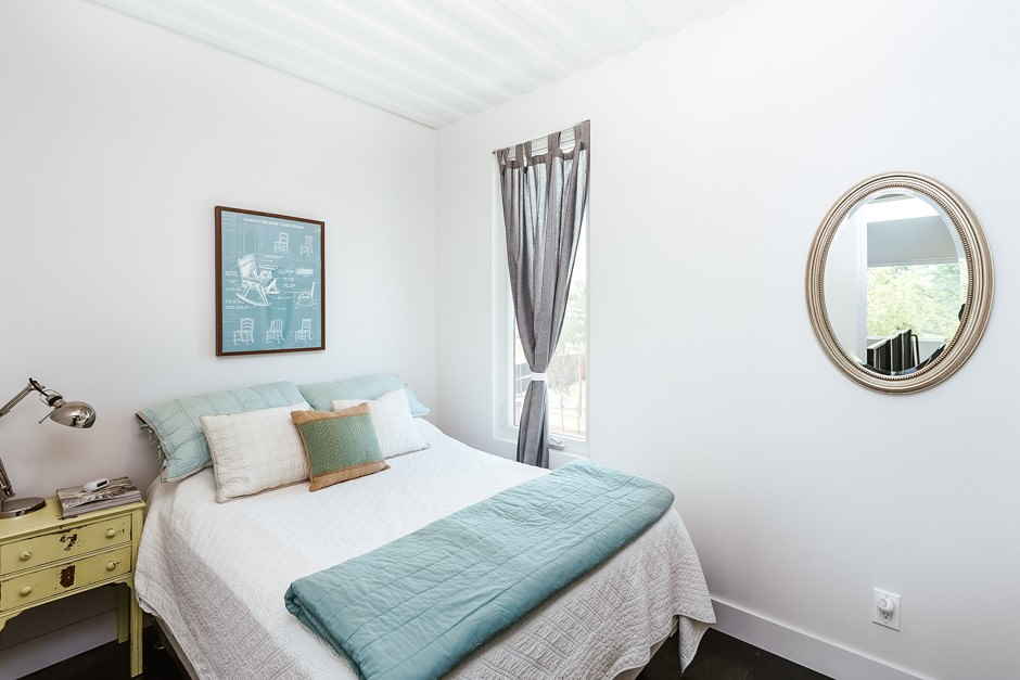 The shipping container apartment is also furnished similarly to the family’s home just next door, with a variety of eclectic and handmade items that give the space a ton of character. While the space isn’t huge, it’s certainly livable and wouldn’t feel cramped for a couple or even a smaller family. And thanks to the backyard access and the scenic front porch, you don’t necessarily have to stay inside anyway.