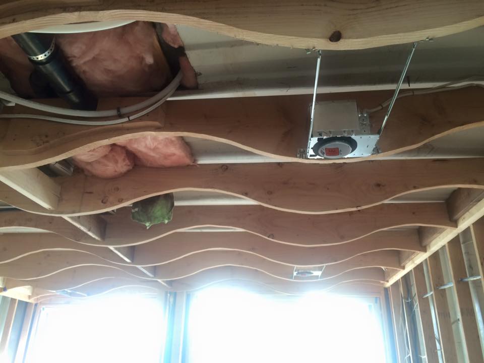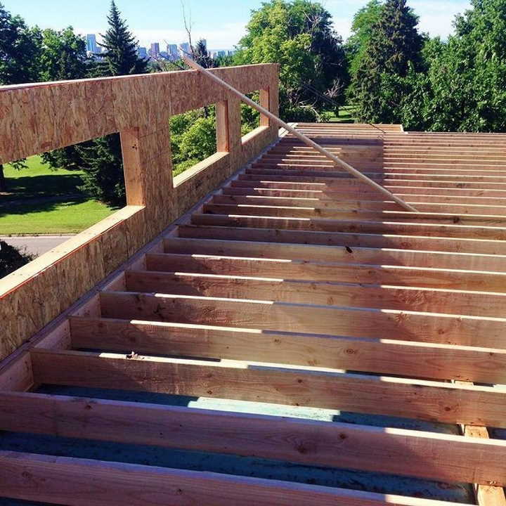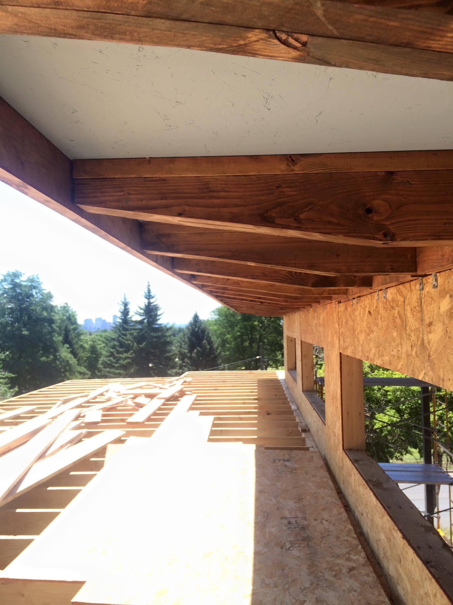 Leaving the original garage (now, primarily used as a home gym) intact meant adding external steel supports to the side of the garage. So the new apartment doesn’t so much sit on the garage as it hovers above it, supported on its ends by steel stilts.