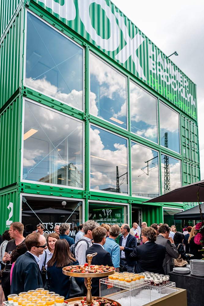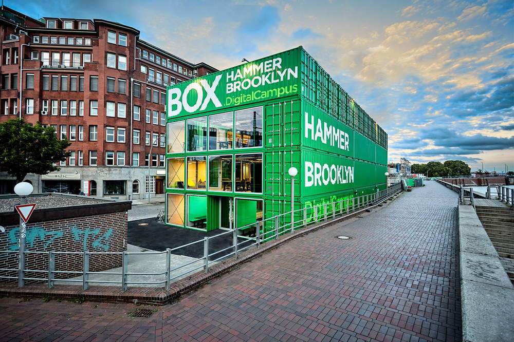 Named after the Hammerbrook district of the city where it is located, the digital campus is intended to be a European center of gravity for futurism and the prototype city of tomorrow. Over the coming years, the campus will grow to include several buildings including the repurposed USA Pavilion from Milan’s EXPO 2015. To get started building the campus, the leaders of Hammerbrooklyn turned to shipping containers.