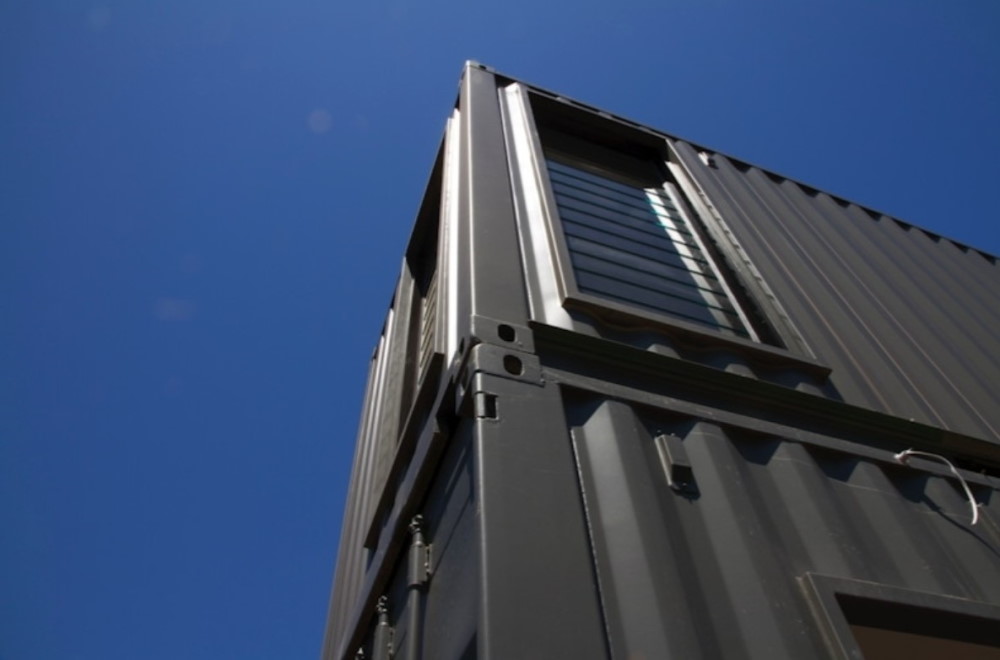 Large windows are used throughout the home, especially in areas between the stacks of containers. The windows serve a dual purpose: dramatic views and enclosing the otherwise open space between the container for climate control purposes.