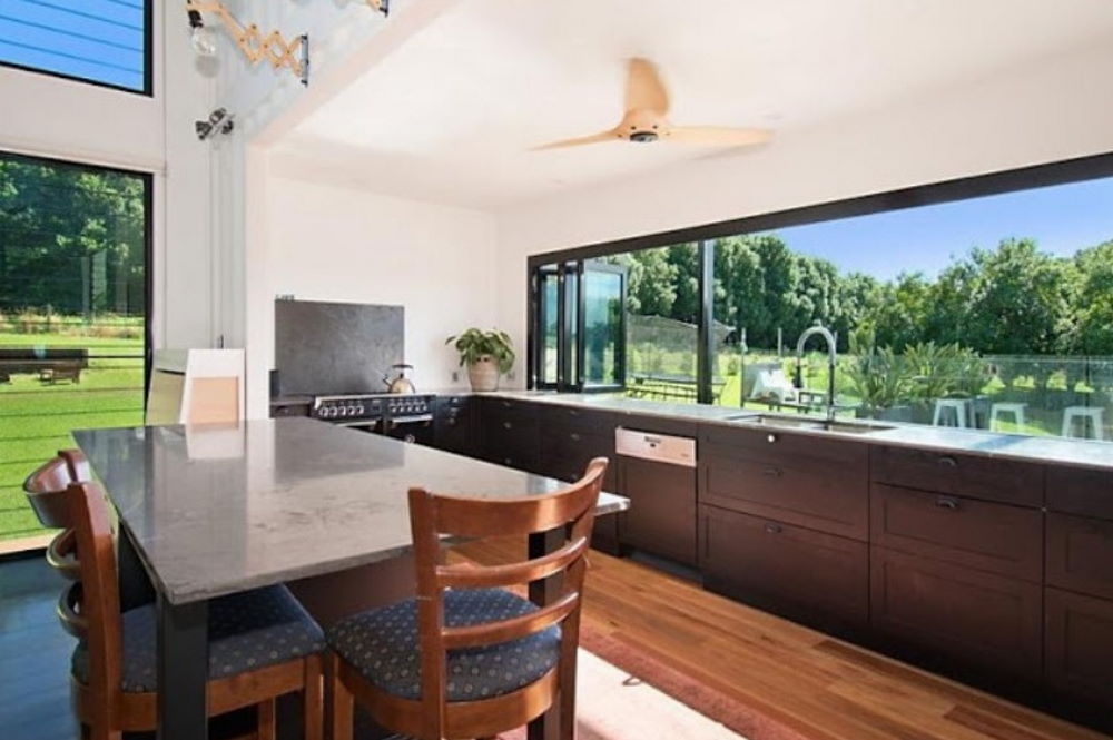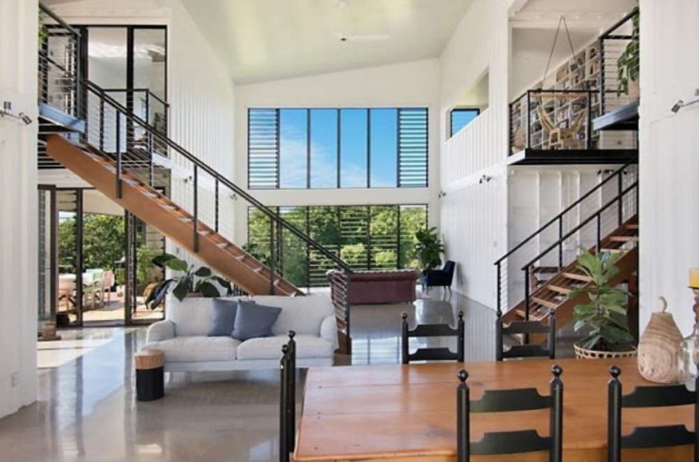 This unmistakable home takes small 20ft containers and turned them into a huge container home with soaring spaces. Set in a rural area just a short drive from Australia’s famed Byron Bay, this house is a shining example of what is possible with hybrid container architecture.