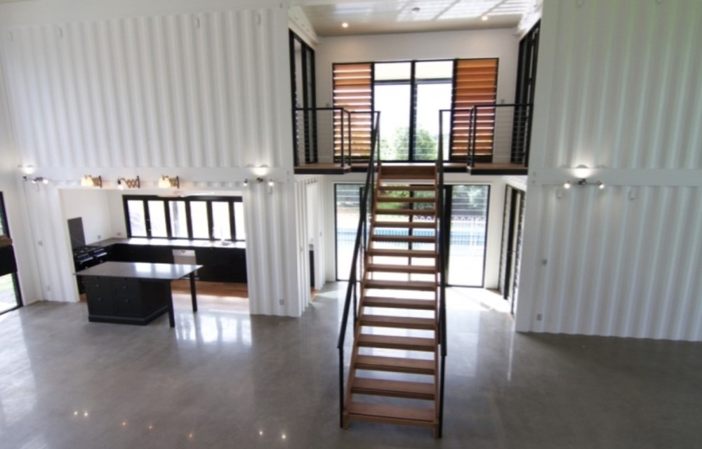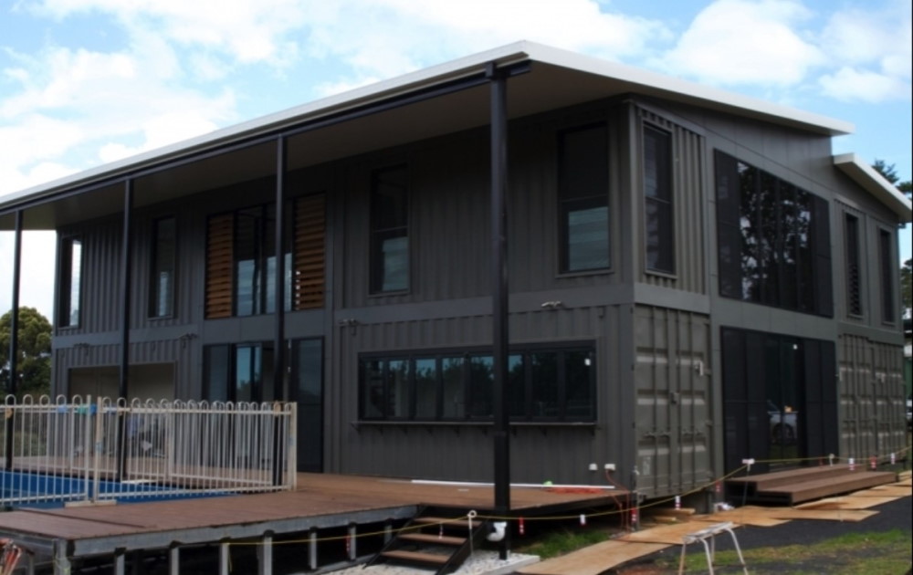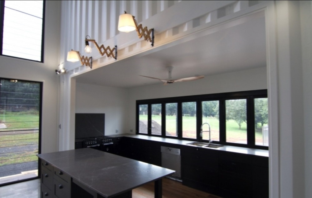 All the containers were modified in an indoor manufacturing plant, then transported and stacked on site. This provided the home with higher building tolerances and resulted in a completion time of only 10 weeks.