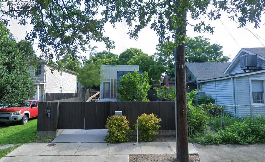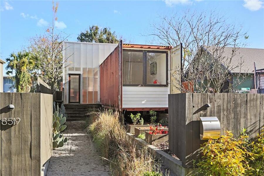 The home is set on a 25-foot wide by 125-foot long lot in the Carrollton neighborhood of New Orleans, Louisana. With a building site that narrow, the owners knew they needed a design that was innovative yet still captured the spirit and the constraints of a shotgun house. And given that New Orleans is one of the largest shipping ports in the US, using shipping containers for the narrow build rapidly became a compelling choice.