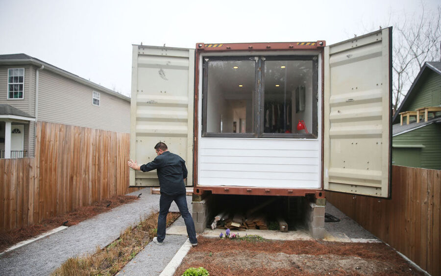 A small footprint with high-end features was their goal, and they worked with their designer to iterate a few options. They were close to building a two-story, three-container option (Click here to see the renderings), but ultimately settled on a one-story, two-container home. Due to the risk of flooding in New Orleans, the home was built on a 3.5-foot high concrete foundation.