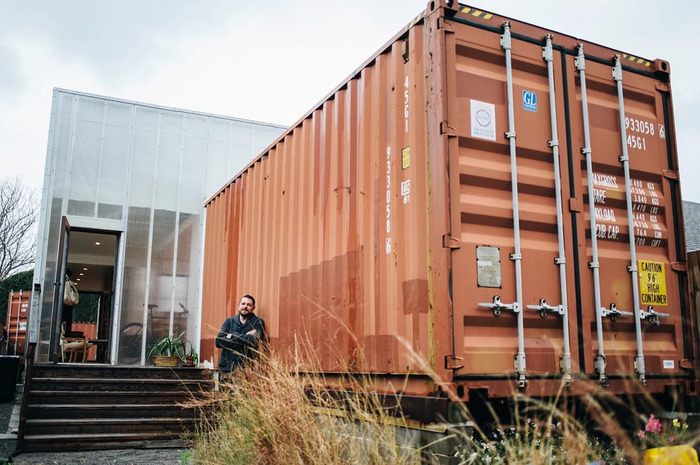 All this cutting and jutting makes it hard to understand the overall size of the home. The 40-foot container is 320 square feet, the 28-foot cut container is 224 square feet, and the translucent cube is 220 square feet. Altogether, that’s 764 square feet. However, since the kitchen in the 40-foot container is actually inside the cube, the net square footage of the home is closer to 720 square feet. This of course is neglecting the size of the container shed in the backyard.