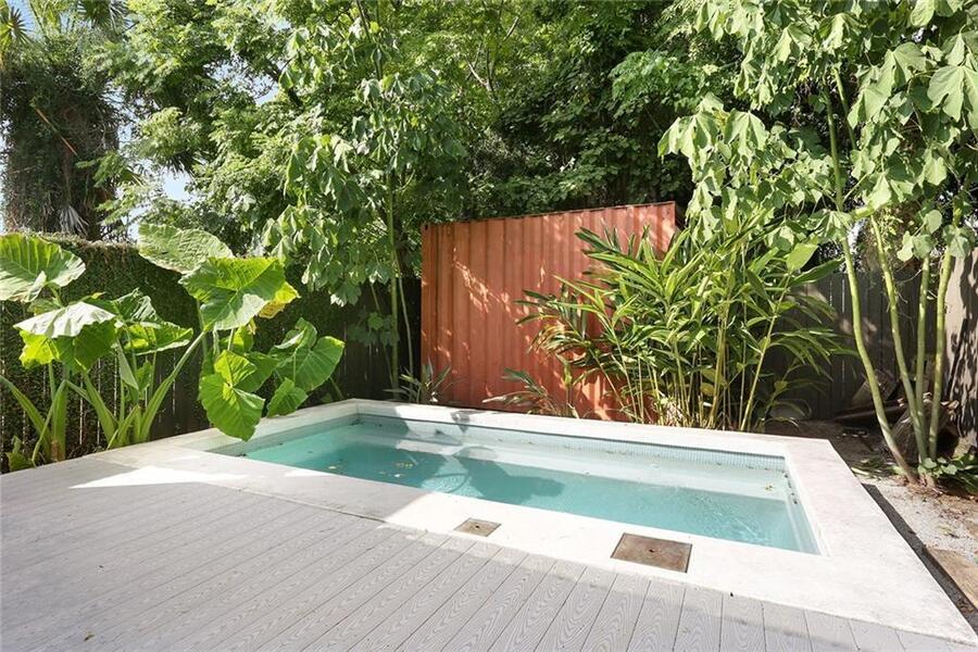 Outside, the small luxuries continue. They added a small plunge pool in the backyard right off the patio (although sadly, not a container pool) and built concrete forms in the front yard to hold planters for fruits, vegetables, and herbs.