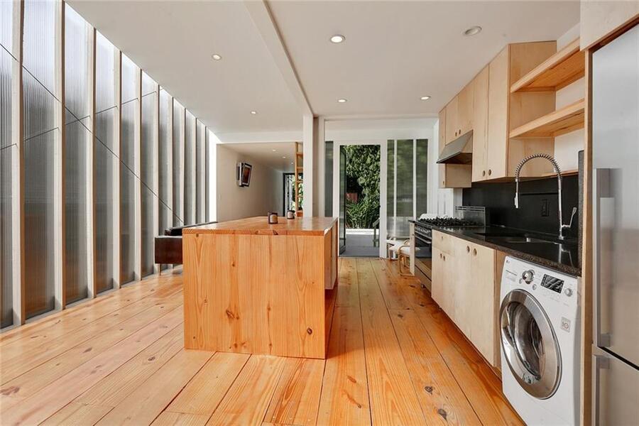 Although they did work with a professional designer and builder, the original owners actually did much of the work on this container home themselves and with the help of friends. The entire project took them about 1.5 years of weekend and holiday work, but saved them some money despite the high-end materials and finishes they chose to use inside.