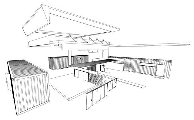 Starting in 2008, students began the design of the facility. The containers were used to house a pantry for canned and frozen foods, a kitchen, a computer lab, a reception area, and a meeting room. The space in between the three containers is used as a large multi-purpose area and has a higher, 12-foot ceiling that includes clerestory windows on two sides.
