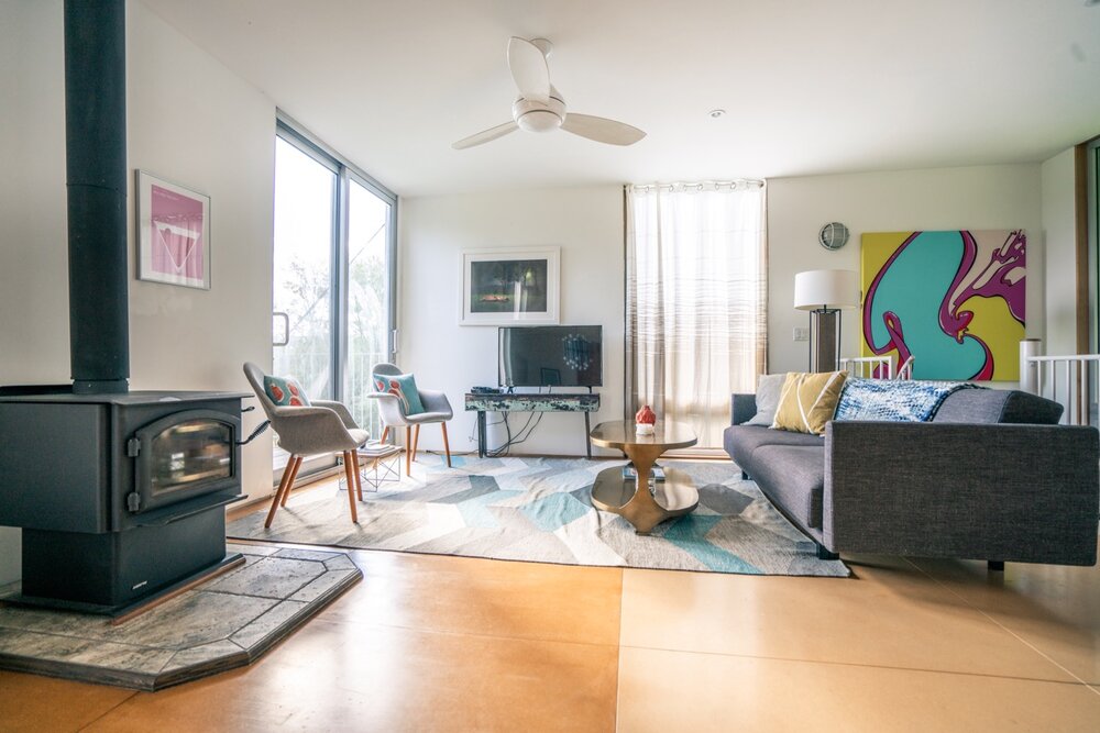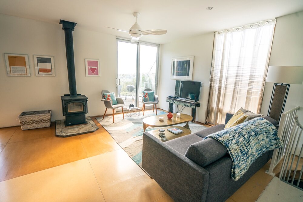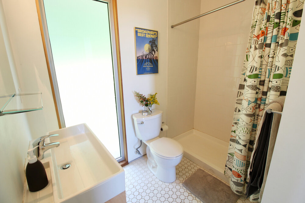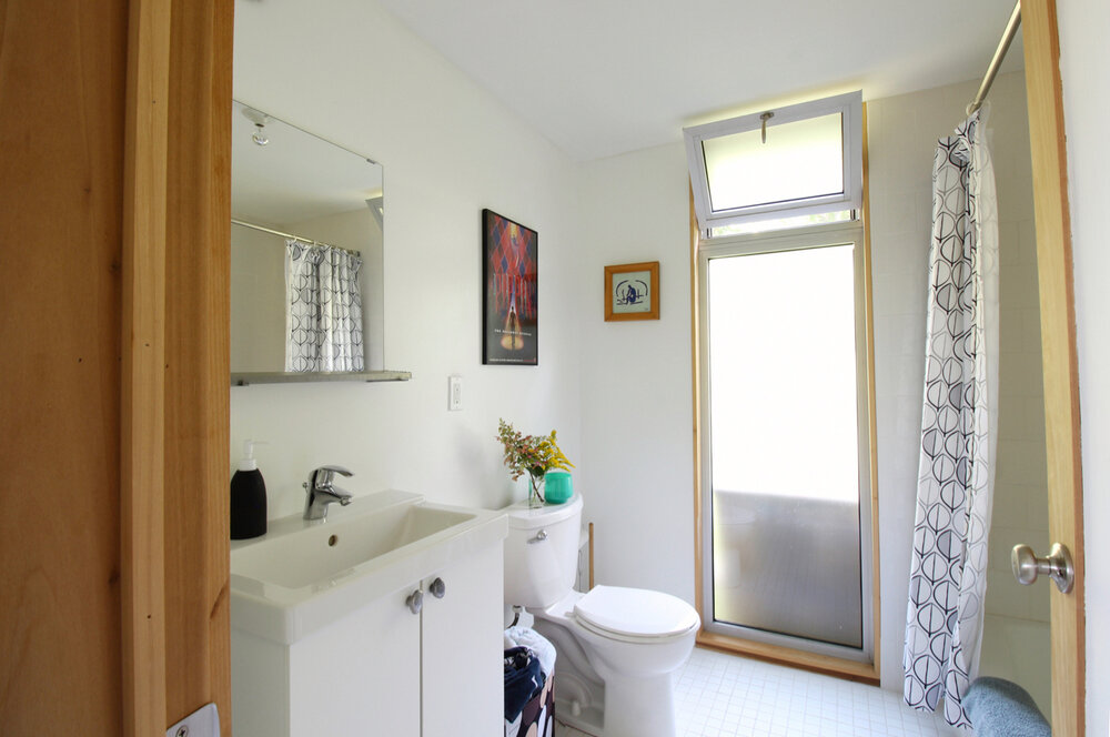 As we mentioned, full bathrooms are available on both levels, each with a sleek, minimalist design. And thanks to each of the suites being on separate ends of the home (and on separate levels as well), the home has a lot of privacy despite it’s smaller size.