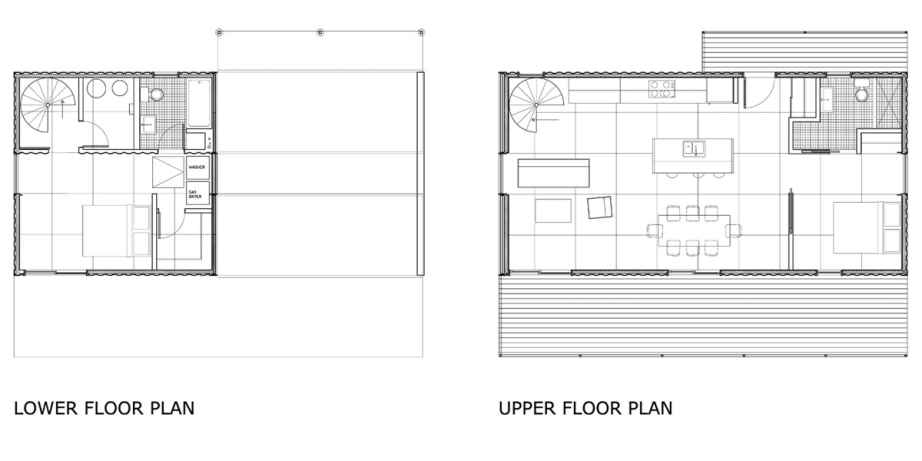 Connecting the two levels are are internal spiral staircase cut through the roof of the bottom containers and the floor of the top containers. But the two levels are also connected in other ways, given the home’s emphasis on the outdoors.