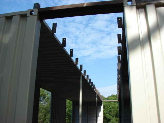 I like it all open like that What did you use as a header to connect the containers together welded? , What was your cost to put this all together