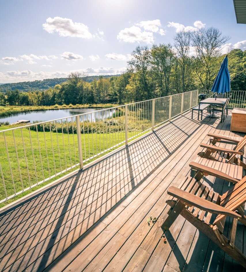 Given the scenic land, proximity to nearby towns like Callicoon and the Delaware River, and the compact but space-efficient design, this home would be a great weekend retreat or full-time country house. The multiple levels not only make the home more interesting architecturally, they also bring clear separation between different functions of the house.