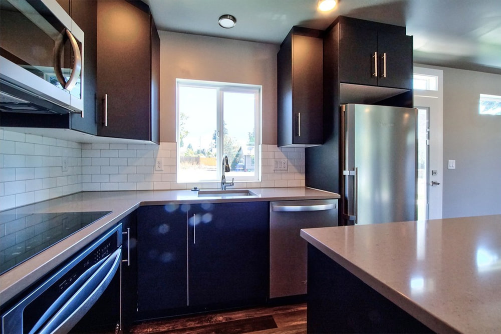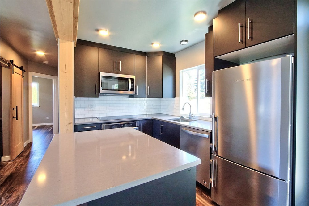 The showpiece of the home is the kitchen, where sleek stainless-steel appliances and quartz countertops convey the modern, luxury aesthetic. And we also love the large, covered porch that provides a shaded, covered area to enjoy the outdoors.