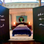 A gently sloping roof sits over this center room, with a perimeter of glass clerestory windows letting additional light in. One of the bedroom containers also has an external deck on top accessible via external ladder, in case you just aren’t getting enough outdoor scenery through the numerous windows!