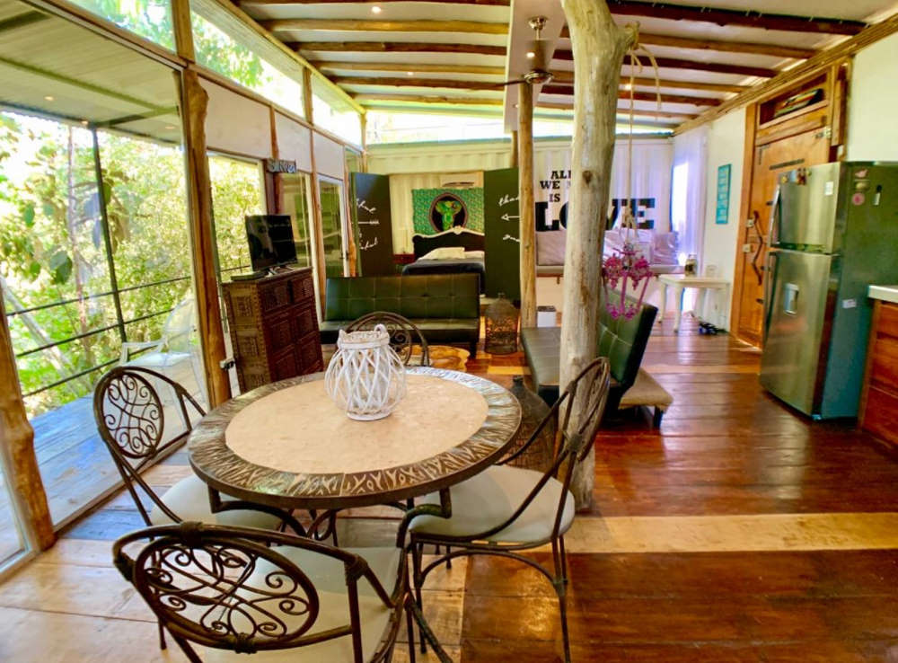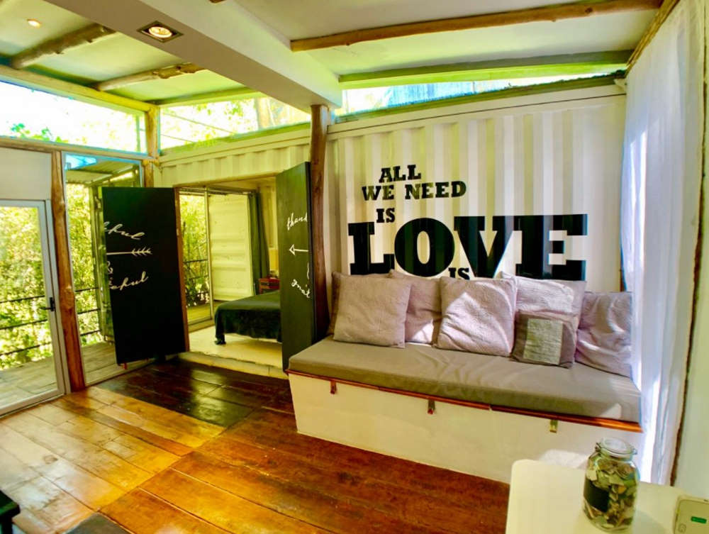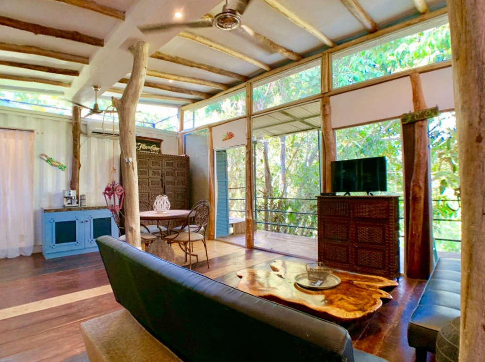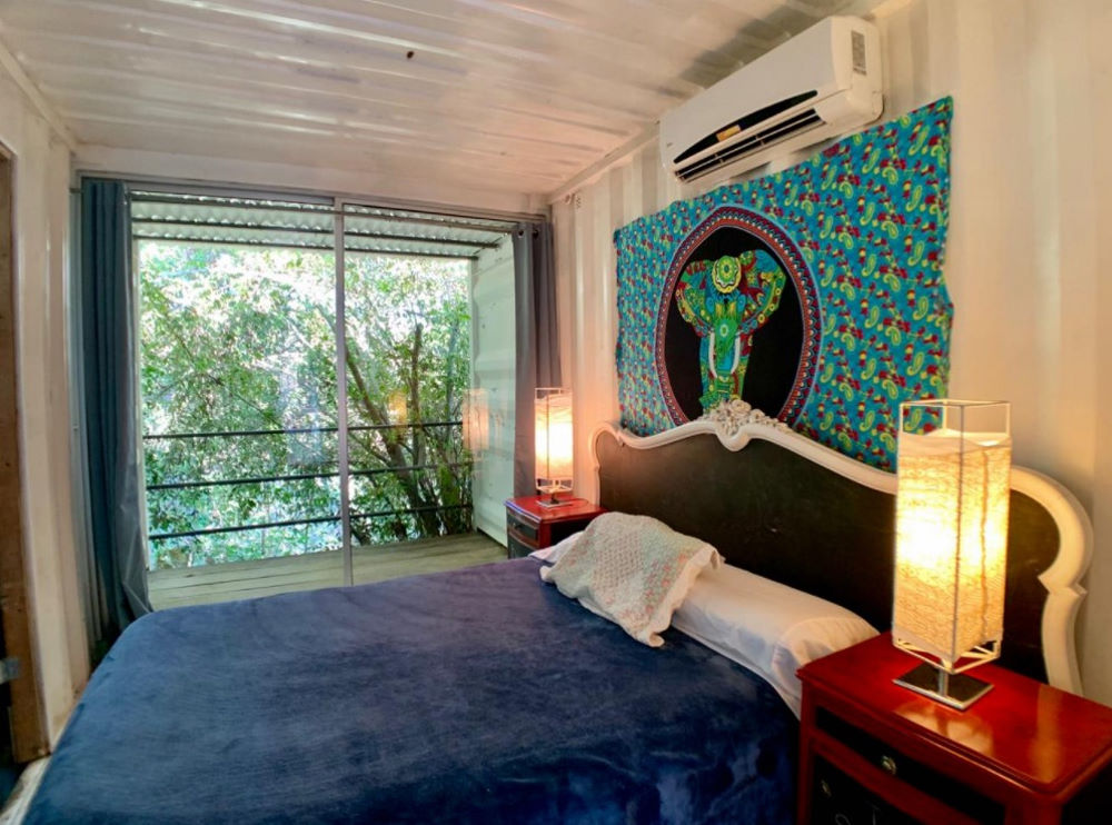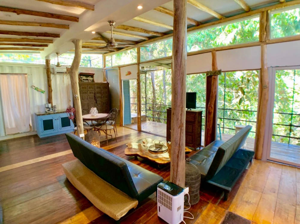 This eco-fabulous container home has incredible style despite its small size and rectangular configuration. It lies up on a hill near Playa Hermosa, a beach area south of Jaco, Costa Rica.