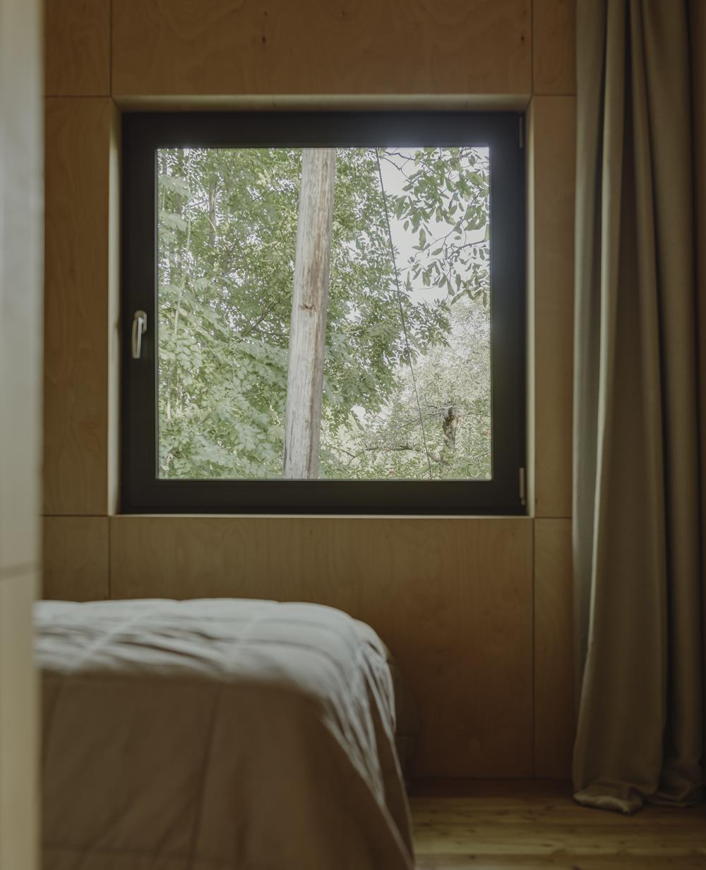 While you may think you’d have to drive for hours into the countryside to find such an idyllic cabin, quite the opposite is true. The Poznań Portable Cabin is less than 3 miles from the city center, but it feels much more remote because it’s surrounded by parkland.