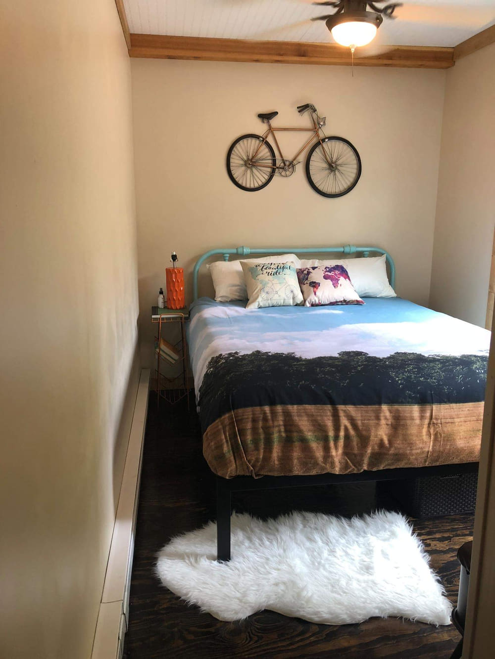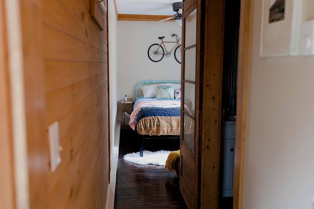 After the bathroom is the simple bedroom. Given that we usually only have two guests at a time, we decided not to use the additional space of a bedroom door.