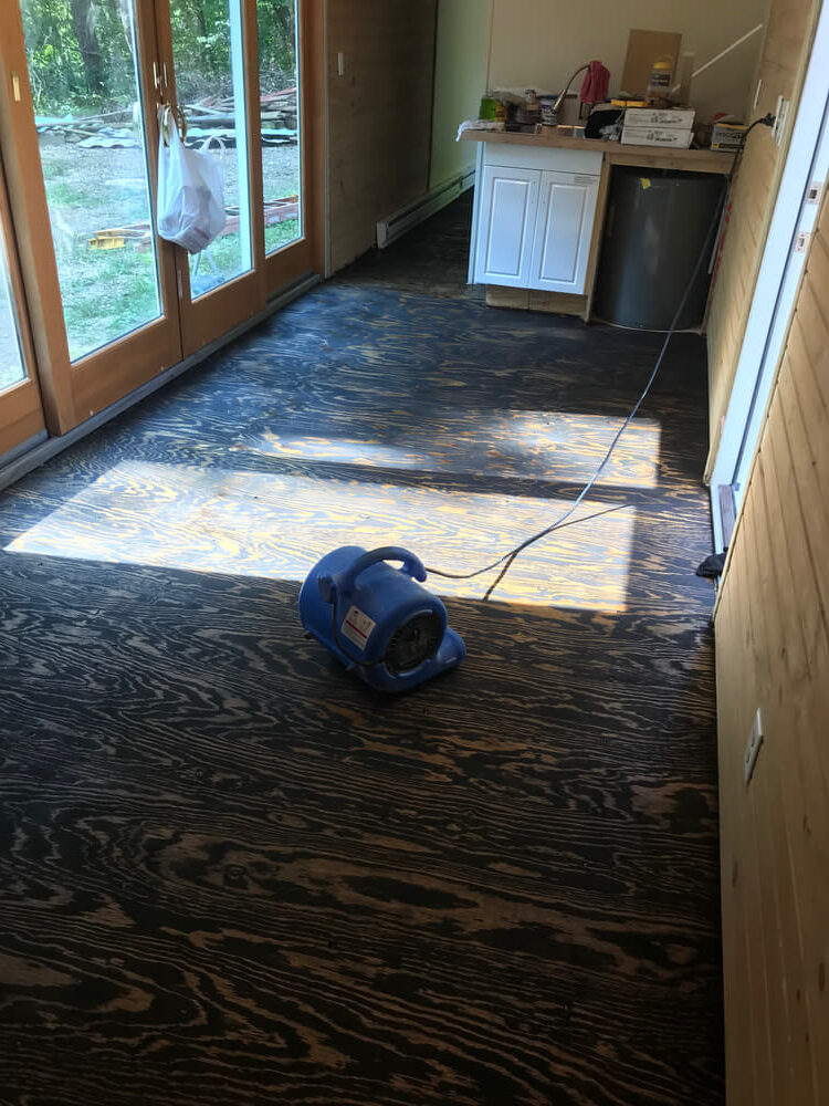 We left the existing container plywood floor in place but added new plywood on top of the wooden floor joists for our finished floor.