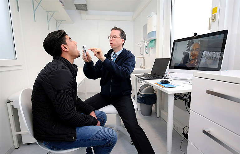 In short, the RFRC serves as a consultation center for refugees needing medical care. It incorporates a video teleconferencing system so that doctors in the container can have live video-translation to communicate with patients in 50 different languages.