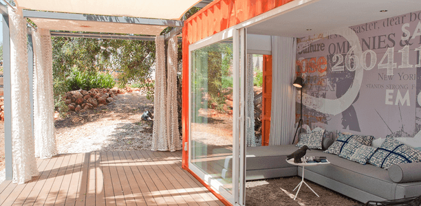 Despite using only one cargo box, this container home in Portugal feels spacious thanks to the huge sliding glass doors that open to a shady outdoor porch. Click Here to Learn More